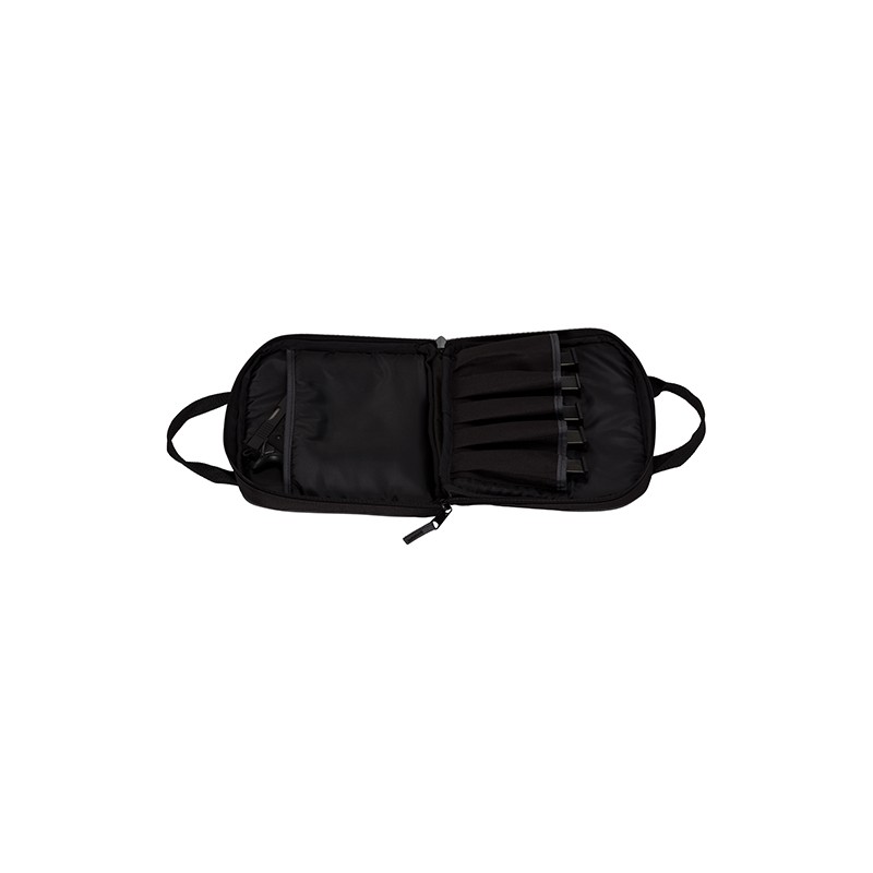 Holds one pistol and five extra magazines, rugged nylong, closed cell foam protection.