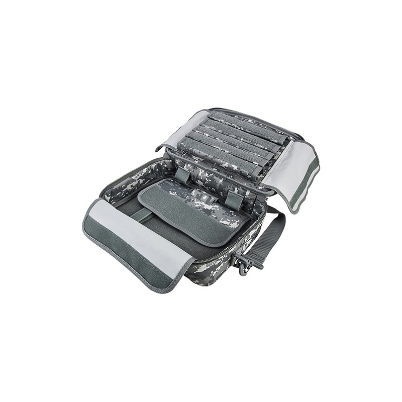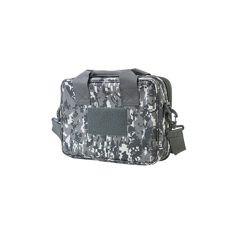 - The Main Pistol Compartment can fit two standard full framed semi-auto pistols. The compartment floor is lined with loop fasteners and comes with four hook & loop straps to secure the pistols in place. There are two large flaps that close over the pistols to help secure them in place and to protect them from being scratched.