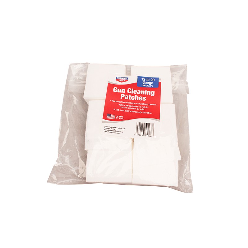 Birchwood Casey's Gun Cleaning Patches offer better features, and a better value, all in an American made product. Our patches feature a durable cross weave pattern that enhances the patches scrubbing power and is entirely lint free. The highly absorbent material holds more oil for better coverage and more solvent for those extra dirty clean up jobs.
