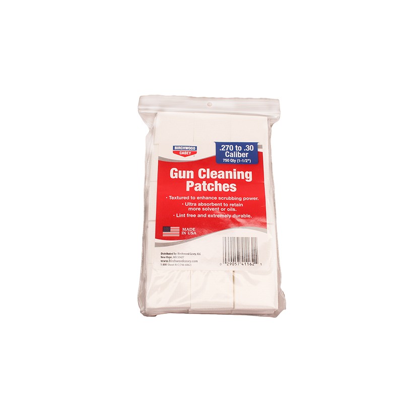 Birchwood Casey's Gun Cleaning Patches offer better features, and a better value, all in an American made product. Our patches feature a durable cross weave pattern that enhances the patches scrubbing power and is entirely lint free. The highly absorbent material holds more oil for better coverage and more solvent for those extra dirty clean up jobs.