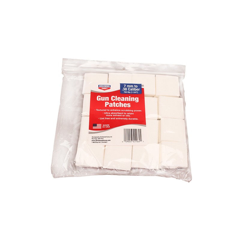 Birchwood Casey's Gun Cleaning Patches offer better features, and a better value, all in an American made product. Our patches feature a durable cross weave pattern that enhances the patches scrubbing power and is entirely lint free. The highly absorbent material holds more oil for better coverage and more solvent for those extra dirty clean up jobs.