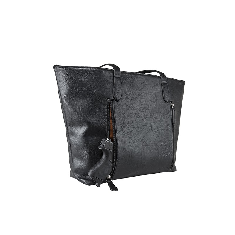 Large Tote Bag featuring a primary CCW compartment is located on the back side of the purse with two zippers on either side for easy access to the holster.