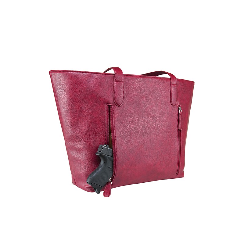 Large Tote Bag featuring a primary CCW compartment is located on the back side of the purse with two zippers on either side for easy access to the holster.