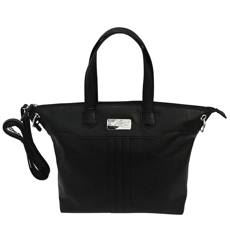 Faux leather Satchel purse featuring three vertical stripes on the front, metal rings with a shoulder strap, the primary CCW compartment is located on the back side of the purse with two zippers on either side for easy access to the holster.