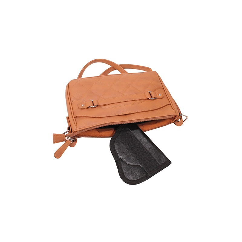 Quilted Cross body Bag- Brown, CCW handbag with multiple compartments to secure the included universal holster.