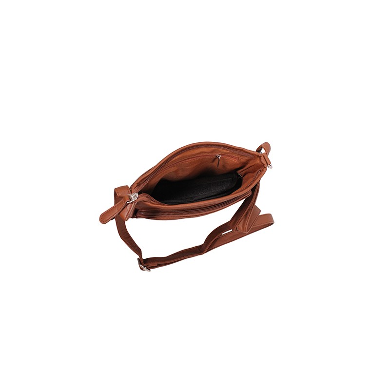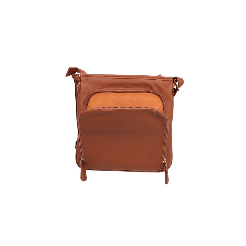 - Faux leather Small Messenger Cross Body Bag with three zippered compartments and pockets on the front side