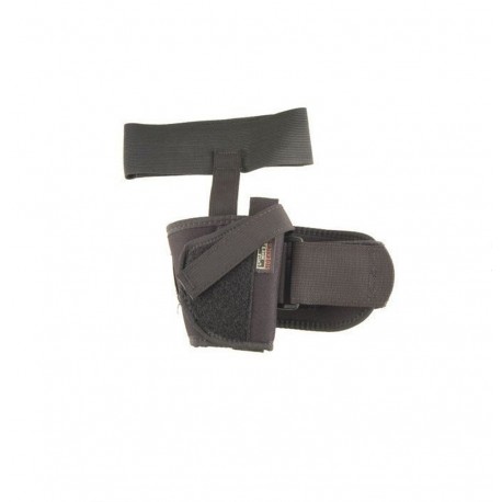 Super concealable, super comfortable Cordura nylon holster hides small and medium guns even compact large frame autos inside pant leg. Wraparound design snugs holster strap around ankle soft knit fabric lies next to skin. Cinch-down design with Velcro adjustment removable calf strap Velcro-adjustable. Right hand model for inside of left leg. Nylon web retention strap with reinforced thumb break.