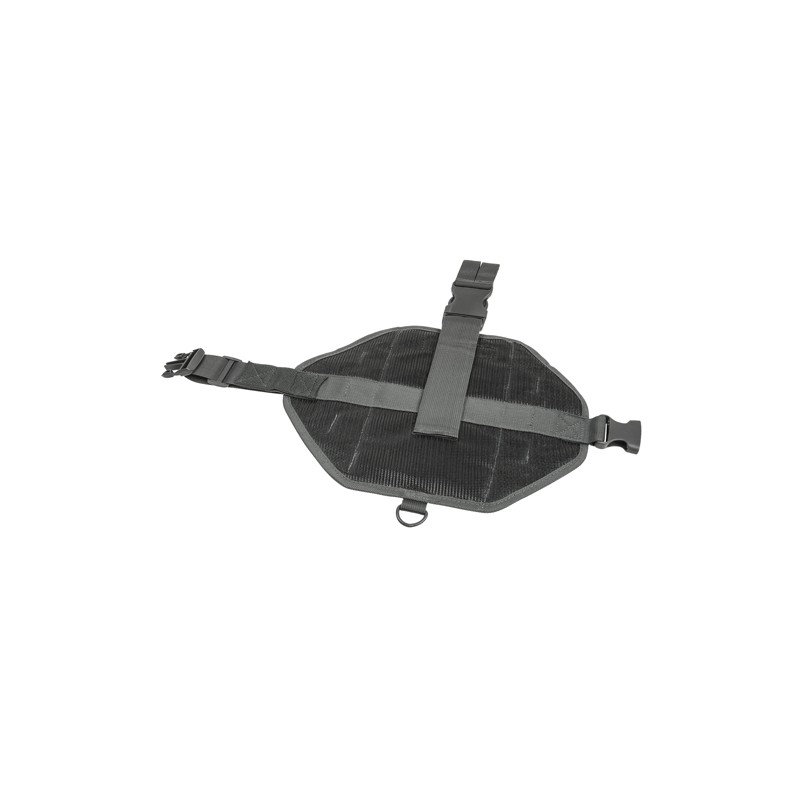 - Rubberized backing and adjustable thigh strap with quick connect buckles keep the drop leg panel in place when you're maneuvering. a metal d-ring is provided on the bottom of the drop leg panel if you need to secure the panel to your thigh for additional support