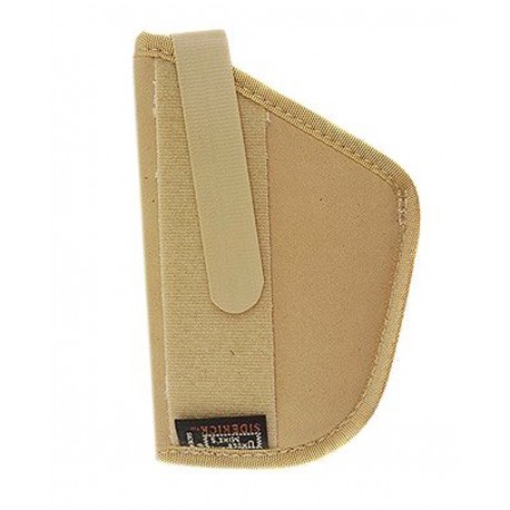 A slim, four-layer laminate holster designed for deep concealment. Holster is covered with a soft, suede-like outer shell that can be comfortable worn directly against the skin. Velcro-covered belt loop on both sides makes holster ambidextrous and accommodate either body armor side adjustment straps of Belly Band straps. Laminated construction includes a layer of waterproof closed-cell foam padding that forms a moisture barrier against perspiration. Light color minimizes show through.