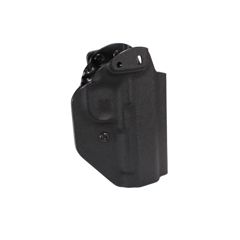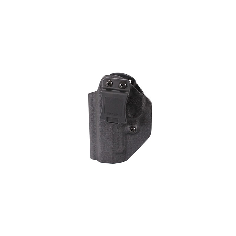 Inside the Waist Band or can be worn On the Waist Band. Ambidextous design. Custom molded fit using high quality Boltaron (a form of Kydex). Molded, trimmed, assembled, buffed by hand. Adjustable cant 0-15 degrees. Includes 1.5" belt attachment. Audible click passive retention. Adjustable retention. Quality screws, rivets and attachments.