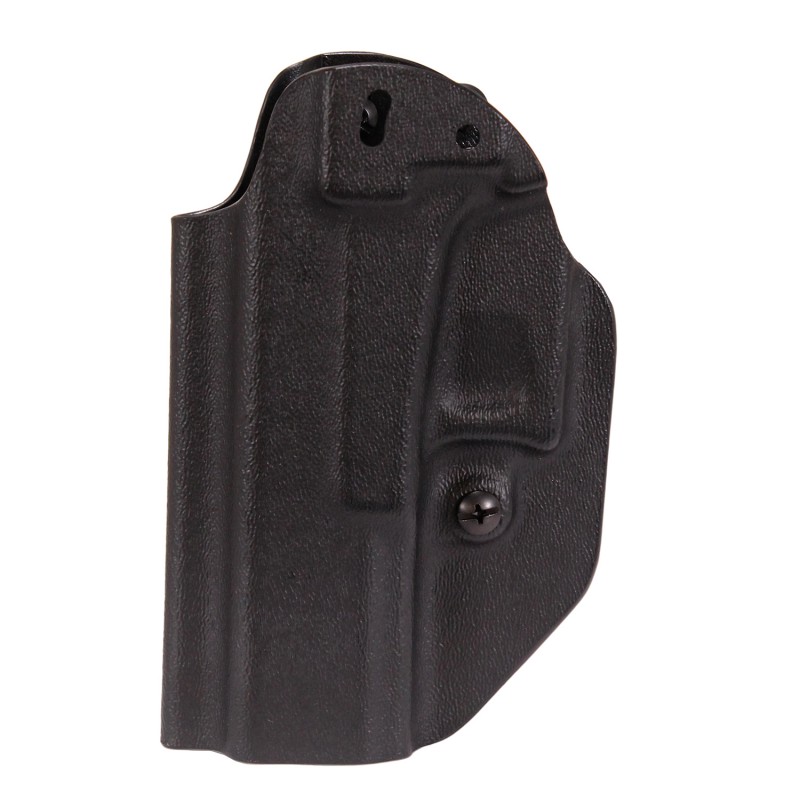 Inside the Waist Band or can be worn On the Waist Band. Ambidextous design. Custom molded fit using high quality Boltaron (a form of Kydex). Molded, trimmed, assembled, buffed by hand. Adjustable cant 0-15 degrees. Includes 1.5" belt attachment. Audible click passive retention. Adjustable retention. Quality screws, rivets and attachments.