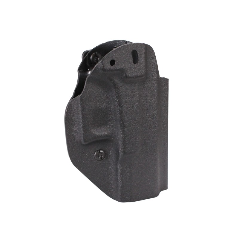 Inside the Waist Band or can be worn On the Waist Band. Ambidextous design. Custom molded fit using high quality Boltaron (a form of Kydex). Molded, trimmed, assembled, buffed by hand. Adjustable cant 0-15 degrees. Includes 1.5" belt attachment. Audible click passive retention. Adjustable retention. Quality screws, rivets and attachments.