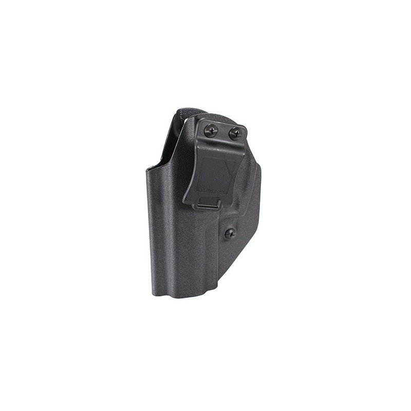 Inside the Waist Band or can be worn On the Waist Band. Ambidextous design. Custom molded fit using high quality Boltaron (a form of Kydex). Molded, trimmed, assembled, buffed by hand. Adjustable cant 0-15 degrees. Includes 1.5" belt attachment. Audible click passive retention. Adjustable retention. Quality screws, rivets and attachments.
