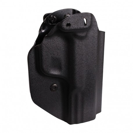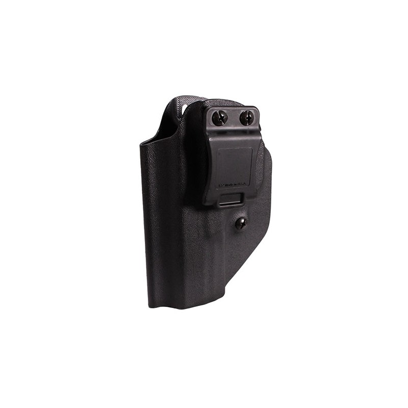 Inside the Waist Band or can be worn On the Waist Band. Ambidextous design. Custom molded fit using high quality Boltaron (a form of Kydex). Molded, trimmed, assembled, buffed by hand. Adjustable cant 0-15 degrees. Includes 1.5" belt attachment. Audible click passive retention. Adjustable retention. Quality screws, rivets and attachments.