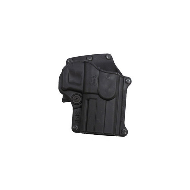 - Allows for rapid presentation, yet securely locks handgun in place.