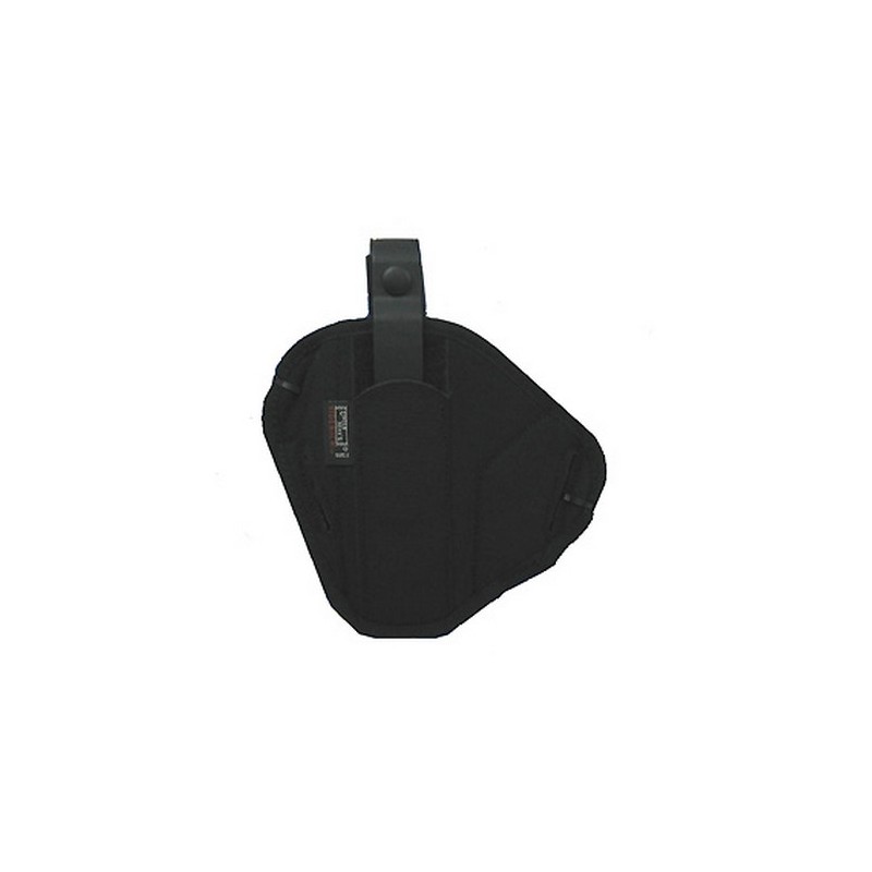 Cordura nylon with belt loops on both sides of holster. Models to carry and conceal small to very large handguns comfortable. Flattens profile for optimum concealment. Medium high ride design positions gun for smooth draw. Extra thin laminate for minimum thickness. Holster conforms to body contour for comfort, concealment. Molded thumb break and non-stretch retention strap. Butt forward strong side carry.