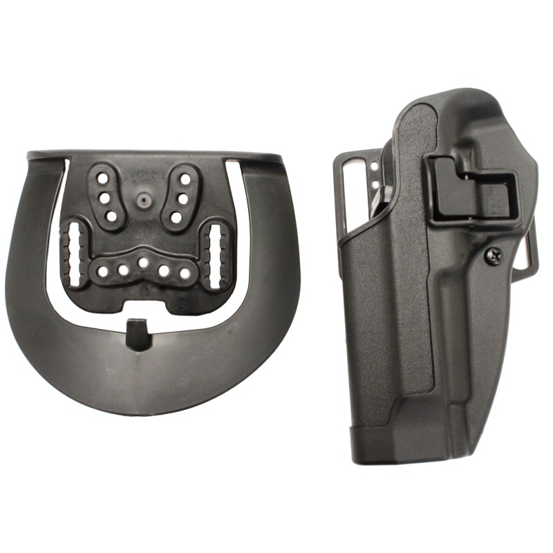 This unique holster design allows you to forget old-fashioned thumb breaks that slow your draw and complicate re-holstering. The patented SERPA Technology lock engages the trigger guard as you holster the pistol and won't let go until you release it. The release is made using your normal drawing motion, with the trigger finger beside the holster body.