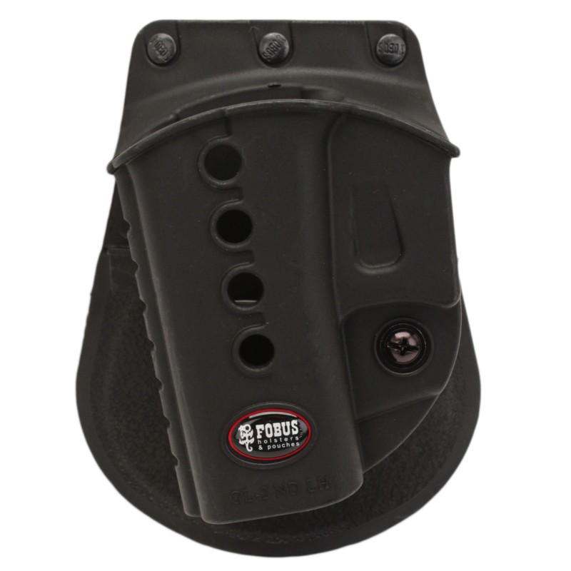 The E2 series features one-piece holster body construction, and like all Fobus Holsters, the Evolution, is lightweight and includes steel reinforced rivet attachment and a protective sight channel. The paddle also includes a rubberized insert to provide both comfort and stability.