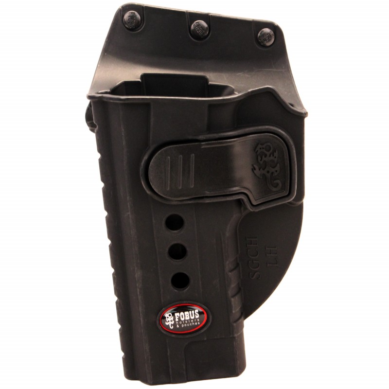 The CH holster provides Active Retention while allowing virtually unhampered presentation of the pistol. This is accomplished by incorporating a releasing paddle that is activated by the index finger of the user without need to alter the draw stroke.