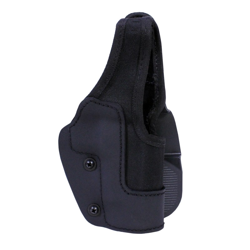 KNG (Kydex New Generation) is an advanced multi-layer material developed by Front Line for use in tactical, law enforcement, and carry holsters. The outside layer is a light but sturdy Kydex. The next layer is a durable Cordura. The third layer is a molded PVC that fits the shape of the weapon perfectly. Beneath this is a layer of firm polyethylene for extra protection against impacts. The inner layer is a smooth, waterproof velvet that offers the best possible protection for the finish of your pistol. The layers are tastefully molded and assembled for a stitched leather look. With your new KNG holster, holster wear will be a thing of the past. This holster is a must for anyone with a pistol that has a softer melonite type finish, such as Glocks and Springfield XDs. Frontline KNG holsters offer all the benefits of Kydex holsters combined with the best available fit and protection for you firearm.