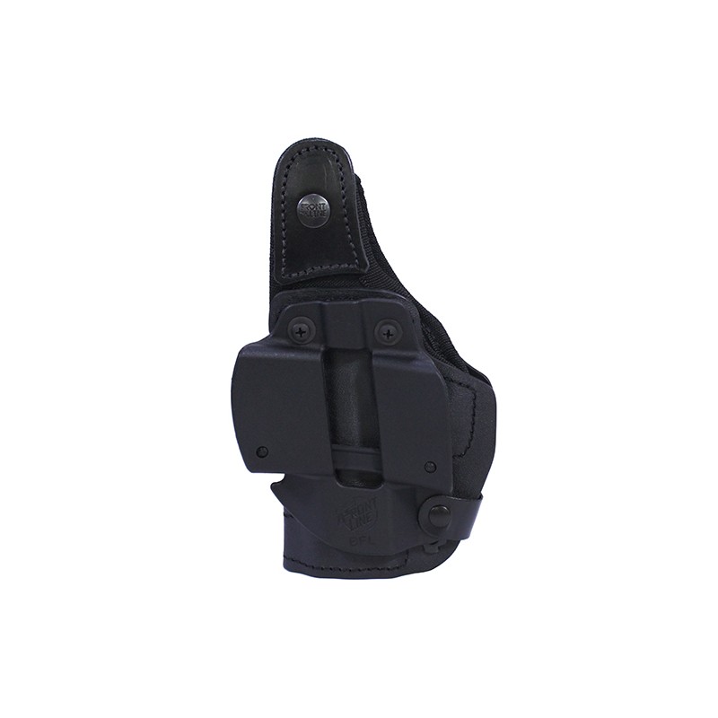 KNG (Kydex New Generation) is an advanced multi-layer material developed by Front Line for use in tactical, law enforcement, and carry holsters. The outside layer is a light but sturdy Kydex. The next layer is a durable Cordura. The third layer is a molded PVC that fits the shape of the weapon perfectly. Beneath this is a layer of firm polyethylene for extra protection against impacts. The inner layer is a smooth, waterproof velvet that offers the best possible protection for the finish of your pistol. The layers are tastefully molded and assembled for a stitched leather look. With your new KNG holster, holster wear will be a thing of the past. This holster is a must for anyone with a pistol that has a softer melonite type finish, such as Glocks and Springfield XDs. Frontline KNG holsters offer all the benefits of Kydex holsters combined with the best available fit and protection for you firearm.