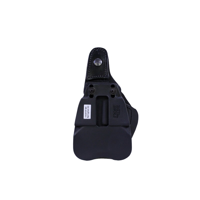 KNG (Kydex New Generation) is an advanced multi-layer material developed by Front Line for use in tactical, law enforcement, and carry holsters. The outside layer is a light but sturdy Kydex. The next layer is a durable Cordura. The third layer is a molded PVC that fits the shape of the weapon perfectly. Beneath this is a layer of firm polyethylene for extra protection against impacts. The inner layer is a smooth, waterproof velvet that offers the best possible protection for the finish of your pistol. The layers are tastefully molded and assembled for a stitched leather look. With your new KNG holster, holster wear will be a thing of the past. This holster is a must for anyone with a pistol that has a softer melonite type finish, such as Glocks and Springfield XDs. Frontline KNG holsters offer all the benefits of Kydex holsters combined with the best available fit and protection for you firearm.