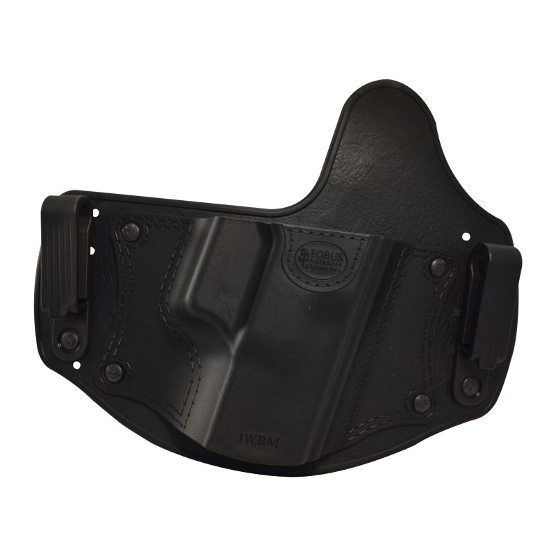 The Fobus Universal Inside the Waistband holster is designed to keep a low profile, simulating the natural way to carry a weapon inside the waist band without any holster at all. The holster is built from a flexible back that buffers between pistol & body, a non-collapsing shell that covers the pistol, and two belt clips to position the holster at waistband height. The holster is lightweight, completely washable, ventilated, durable and comfortable, and most important, it is a universal IWB holster, designed to accommodate multiple same-sized pistols, and therefore requires no shell replacements when changing between pistols of the same size. The IWBM in Combat Cut removes a portion of the synthetic flexible backer. This cut allows for a firmer grasp of the firearm during the draw stroke which improves the draw speed while not sacrificing comfort.