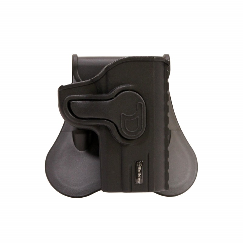 Bulldog's Rapid Release Polymer holster series is made of durable, high-tech polymer materials. The updated gun-specific design is fully adjustable to multiple draw positions. The specially designed locking mechanism provides safe and secure "Level II" retention while offering a one finger "quick draw" release.
