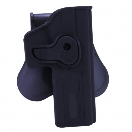 Bulldog's Rapid Release Polymer holster series is made of durable, high-tech polymer materials. The updated gun-specific design is fully adjustable to multiple draw positions. The specially designed locking mechanism provides safe and secure "Level II" retention while offering a one finger "quick draw" release.