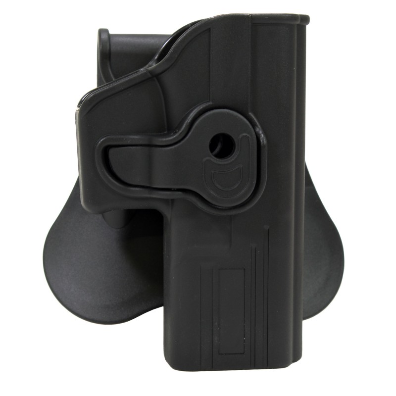 Bulldog's Rapid Release Polymer holster series is made of durable, high-tech polymer materials. The updated gun-specific design is fully adjustable to multiple draw positions. The specially designed locking mechanism provides safe and secure "Level II" retention while offering a one finger "quick draw" release.