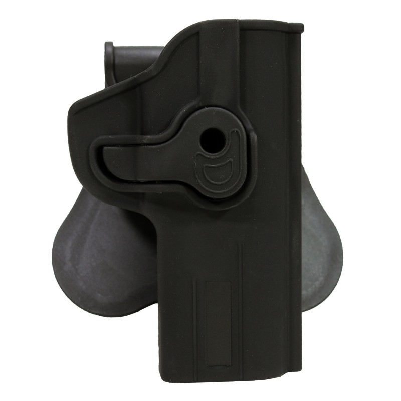 Bulldog's Rapid Release Polymer holster series is made of durable, high-tech polymer materials. The updated gun-specific design is fully adjustable to multiple draw positions. The specially designed locking mechanism provides safe and secure "Level II" retention while offering a one finger "quick draw" release.