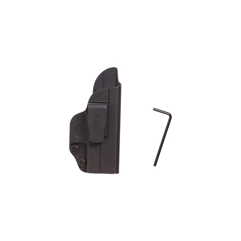 The HELIX Inside the Waist Band Holster is designed to be the low-bulk solution for the concealed carry of small to medium handguns. The HELIX holster is manufactured from thin molded polymer that is formed exactly to fit the gun, especially around the trigger guard and barrel. It rides inside the waist band, either at the center of the back or in front of the hip.