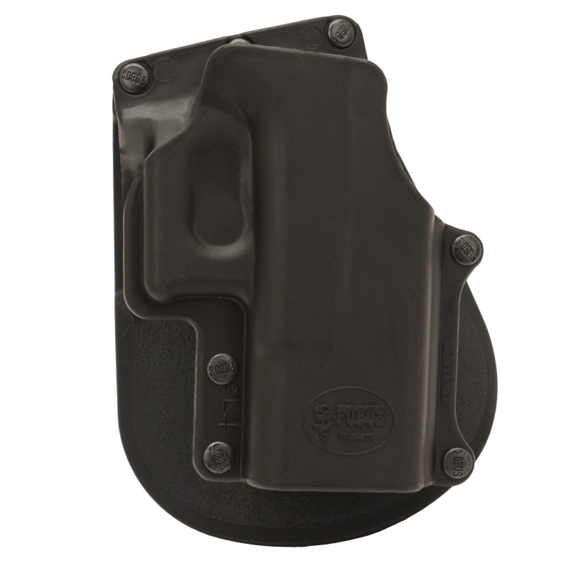 Unique Fobus Roto-Holster rotates 360 degrees and adjusts easily for cross-draw, bodyguard/driver/ small-of-the-back, and strong-side carries. Fobus patented locking adjustment allows the firearm either a forward or reverse cant, with total gun retention. The Roto holster is lightweight, with a flexible two-piece design for maximum strength and all-day comfort.