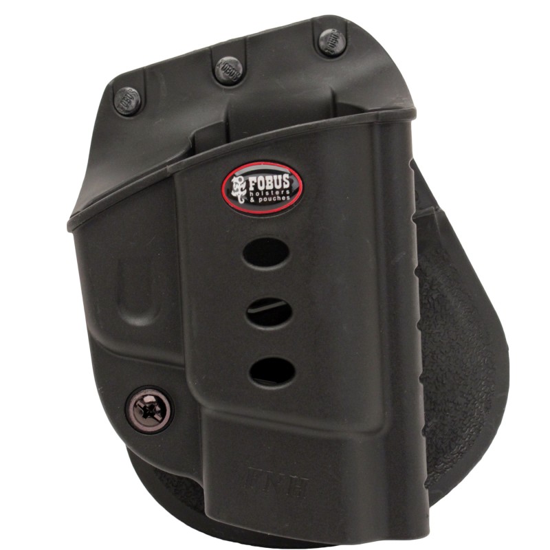 Protective sight channelThe E2 series features one-piece holster body construction, and like all FOBUS Holsters, the E2, is lightweight and includes steel reinforced rivet attachment and a protective sight channel. A tension adjustment screw is incorporated to allow the user to customize the ease of presentation and the security of retention.The paddle also includes a rubberized insert to provide both comfort and stability.