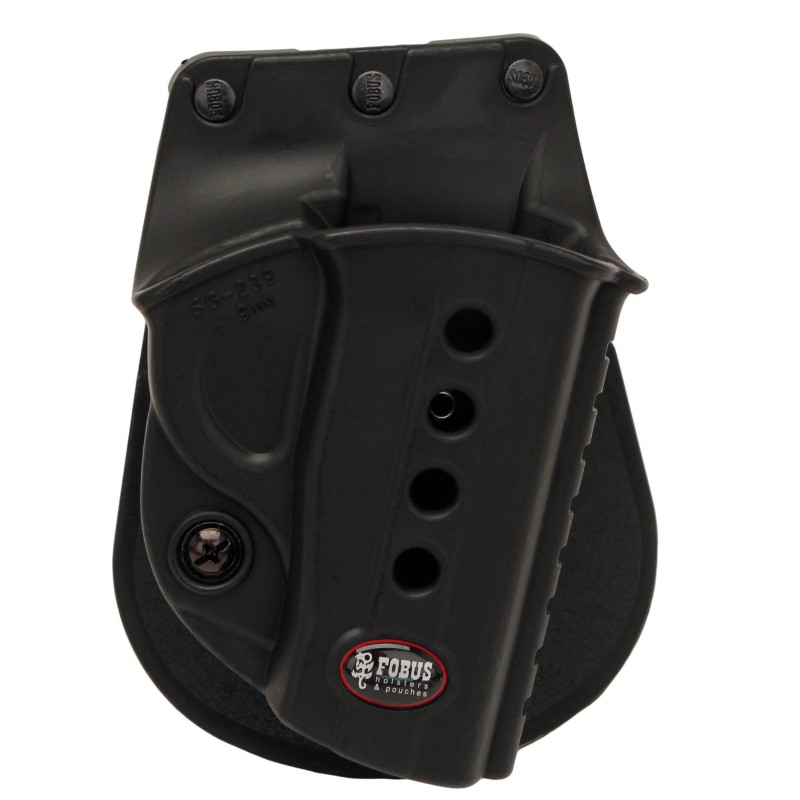 The new E2 series features one-piece holster body construction, and like all FOBUS Holsters, the Evolution, is lightweight and includes steel reinforced rivet attachment and a protective sight channel. The paddle also includes a rubberized insert to provide both comfort and stability.