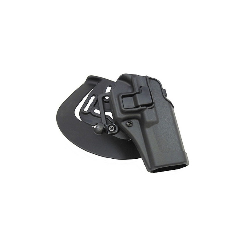 This unique holster design allows you to forget old-fashioned thumb breaks that slow your draw and complicate re-holstering. The patented SERPA Technology lock engages the trigger guard as you holster the pistol and won't let go until you release it. The release is made using your normal drawing motion, with the trigger finger beside the holster body.