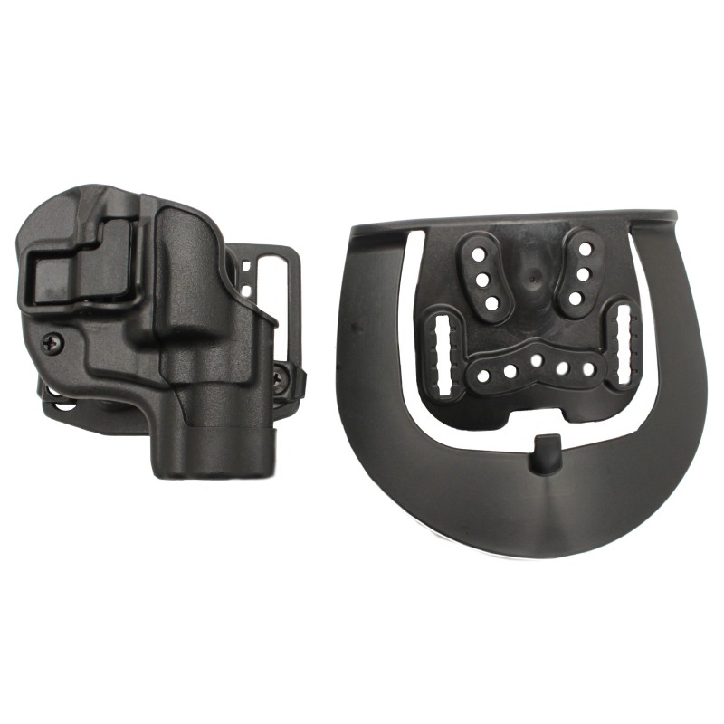 This unique holster design allows you to forget old-fashioned thumb breaks that slow your draw and complicate re-holstering. The patented SERPA Technology lock engages the trigger guard as you holster the pistol and won't let go until you release it. The release is made using your normal drawing motion, with the trigger finger beside the holster body.
