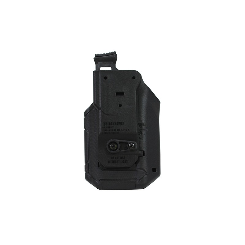 The active retention mechanism locks onto the proprietary Rail Attachment Device, not the frame of the handgun for the non-light bearing model. Blackhawk's proprietary retention mechanism locks onto the SureFire X300/X300U-A and the Streamlight TLR1/2 for the light bearing models.