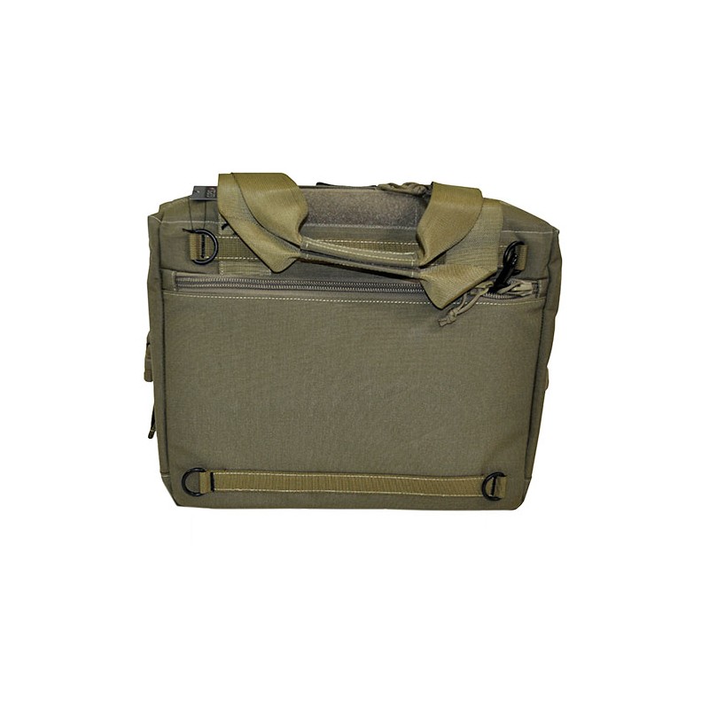 1000 Denier heavy duty material with Dupont Teflon coating. MOLLE webbing system for adding accessories. Insulated cooler will hold up to 12 cans plus cold pack. Backside pocket designed with removable handgun holster and magazine storage pocket. Holster and magazine storage are hooked and loop that can be easily removed or reconfigured. Includes shoulder strap for hands free transportation.