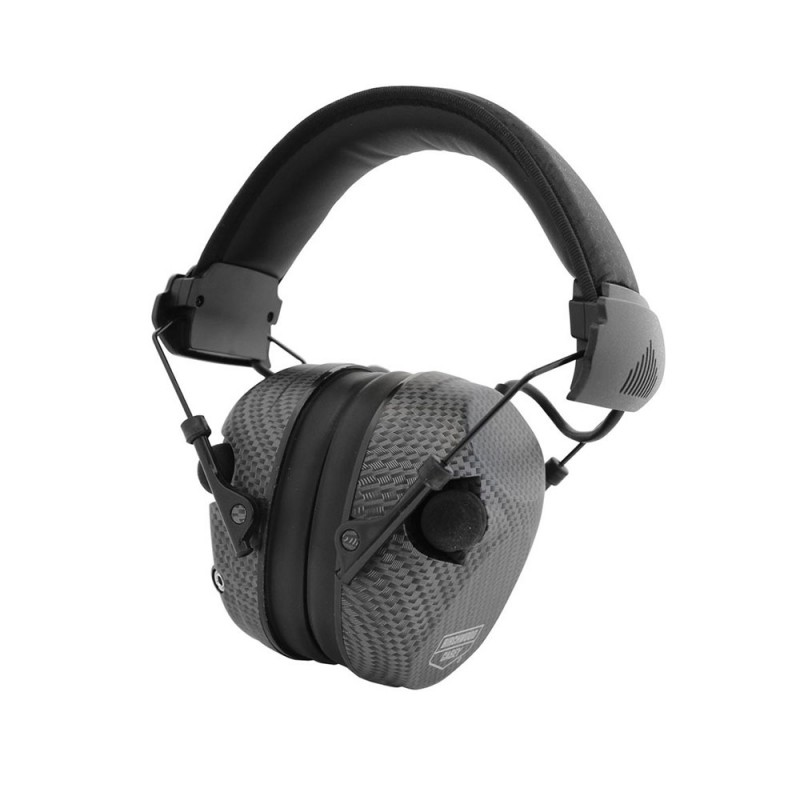 Birchwood Casey eKrest Electronic Muffs. NRR rating of 26dB. Attenuates all sound above 85dB. On/off switch with volume control for variable sound amplification. Auxiliary input jack with auxiliary cord included. Two omni-directional microphones. Includes 2 AAA batteries.
