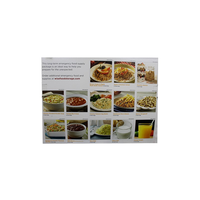 This selection from Wise provides a one month emergency supply of food and drinks for one adult. There are a total of 112 servings. All of the foods are simple to prepare, requiring only hot water. The meals are tasty and nutritious. The assortment includes entrees, sides, breakfast dishes and drink mixes. Wise foods are prepared with a combination of freeze drying and dehydration technologies. Shelf life is up to 25 years when stored in a cool, dry place.