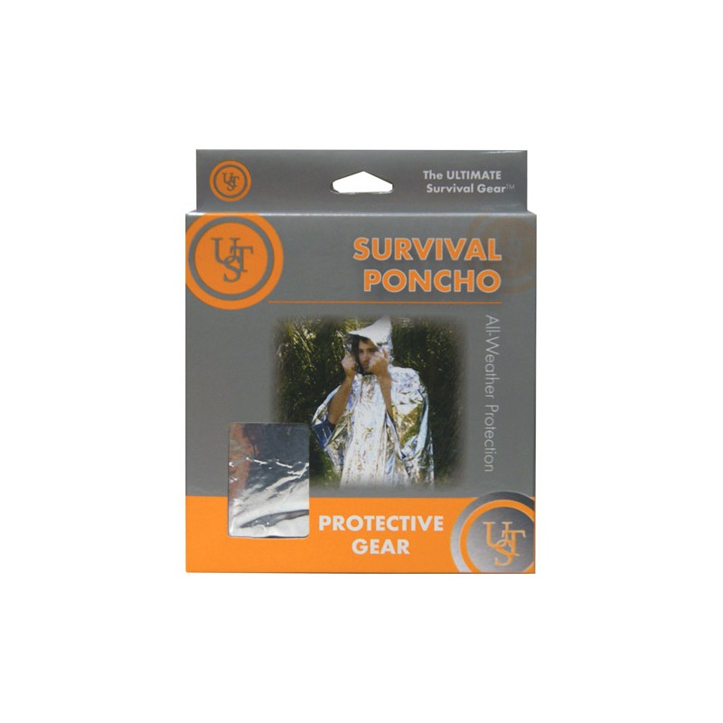 Made of highly-reflective material, the compact, ultra-lightweight UST Survival Reflect Poncho protects you from the elements while also keeping you warm. Used for heat deflection, body heat insulation, or as a wind or rain barrier, the Survival Reflect Poncho folds compactly for storage while backpacking, camping, hunting, and more.