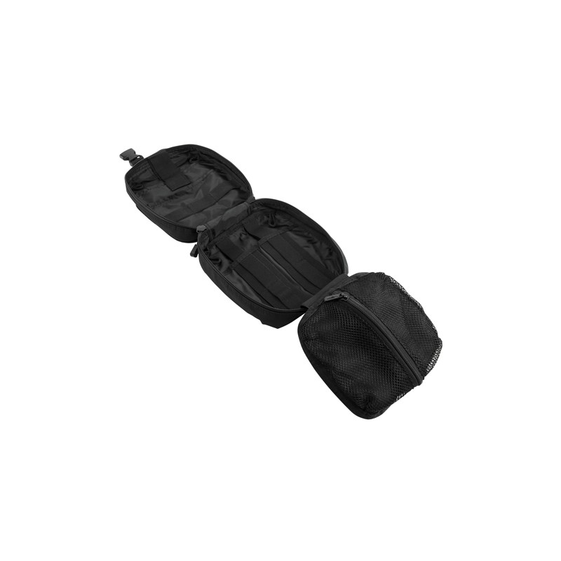 This MOLLE EMT Pouch has a double zippered main compartment that is a tri-fold design that unfolds into three separate compartments for easy access to your supplies. The flip-out panel has a zippered compartment with see-through mesh material to easily identify the supplies stored in that compartment. The other two panels have several pockets and a dozen elastic straps to organize your supplies.This EMT pouch can serve many purposes that requires you carry and organize supplies. Beside the obvious choice of organizing your first aid supplies, this EMT pouch can be used for: everyday carry gear, fishing supplies, camping supplies, action camera bag, school supplies, or any other tasks that you can think of.
