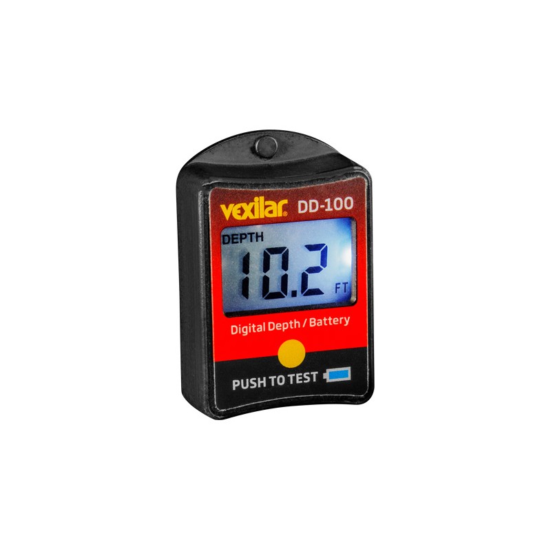 The FL Digital Depth Indicator is the first digital display to show depth at all times when your Vexilar flasher is on while still being able to get the status of your battery with the touch of the button. The FL Digital Depth Indicator (model DD-100) gives anglers what they have been asking for, Digital Depth.