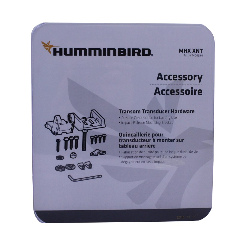 Mounting hardware for the XNT transom mount transducers. Includes a kick up bracket. Hummingbird does not recommend the use of a high speed driver when fastening the bolt and nylock washer.