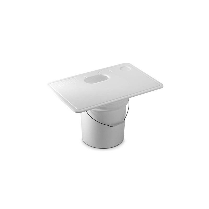 A sportsman's dream, the Fillet 'n Carry is designed with a unique routed bottom that fits securely on 4, 5 & 6 gallon buckets. Large enough for any filleting task this board has large oval hole to pass waste into bucket below. Work surface includes knife slot, beverage holder and juice groove to eliminate spillage of liquids. FDA & USDA approved. Dimensions: 15-1/2" x 23-1/2"