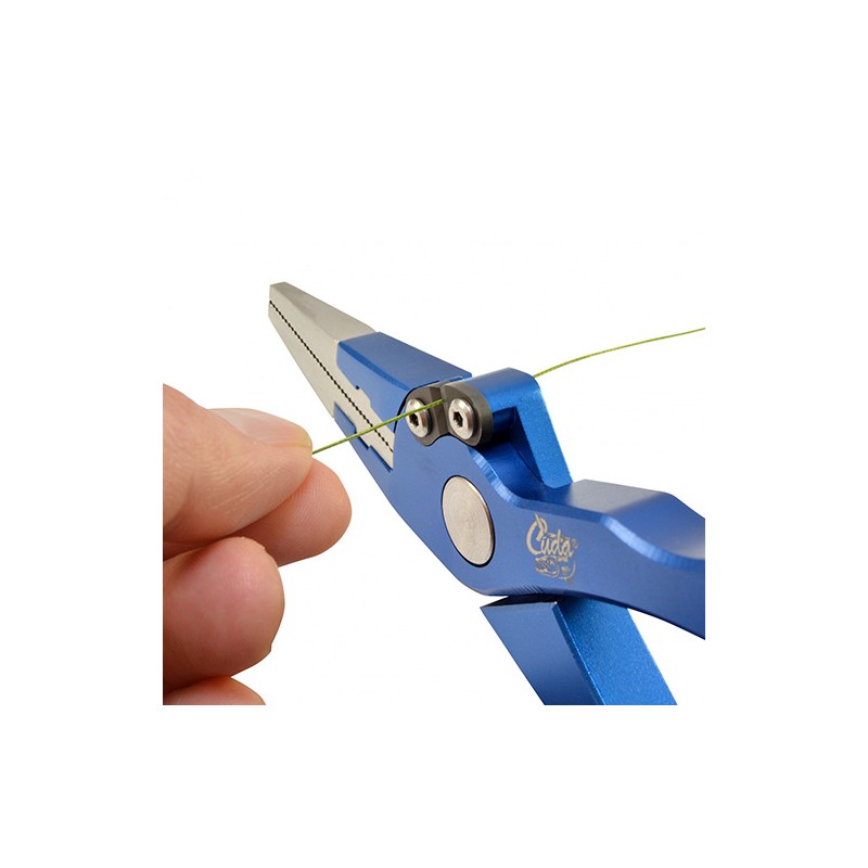 Aluminum construction with an integrated side cutter, this 7.5" plier will cut braid, mono and fluorocarbon. The handles are ergonomic and a convenient lanyard and sheath are included.