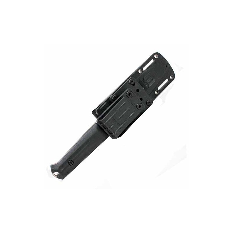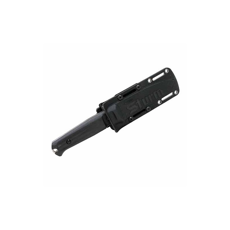 Smooth in the hand and quick in the wrist, the Sturm is a cold weapon with a sharp focus and resilient construction. The 4 ¼" matte AUS-8 stainless steel blade features a trailing point tip and notched spine for thumb placement. The Krayton handle grips soft in your hand. At 9 7/8" overall, the length makes the Sturm a very versatile implement in a tactical situation. The light PA sheath features a rotatable clip on a highly versatile rotatable (SP) platform that can be installed in a number of ways on different areas of the long sheath to make sure the user gets the most comfortable carry option. The sheath is fully MOLLE compatible.
