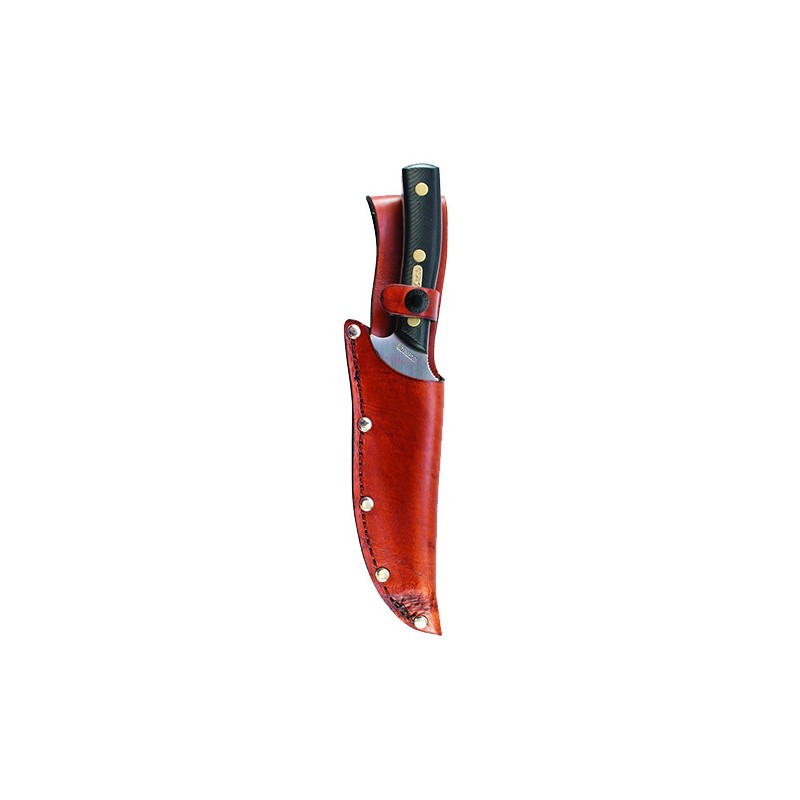 With the sure grip unbreakable sawcut scales and brass accent pins, the handle retains the iconic look of Old Timer while offering a comfortable and secure grip in a variety of conditions. The Deerslayer comes with a leather sheath.