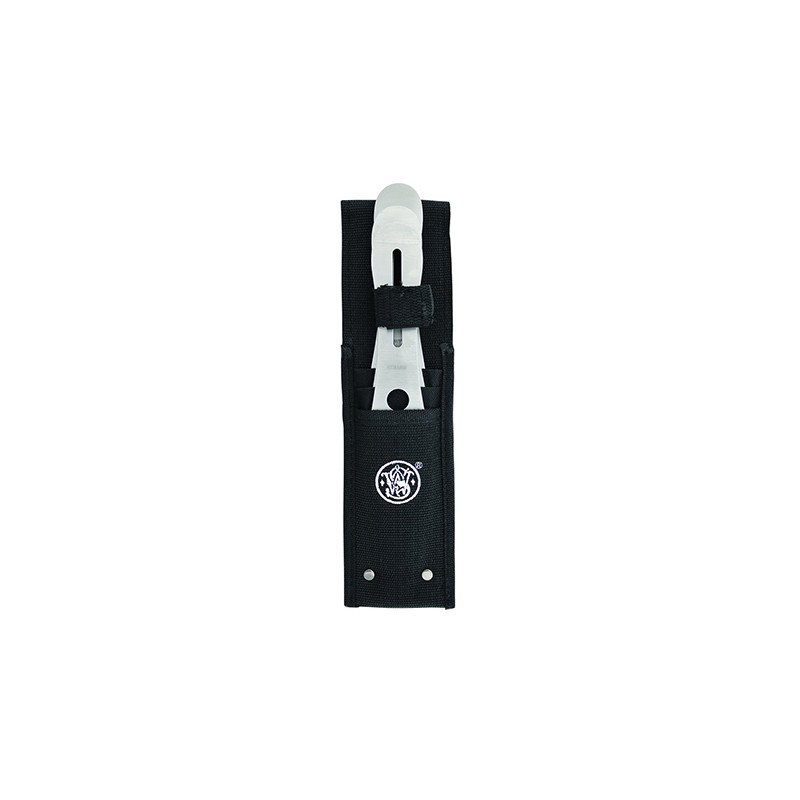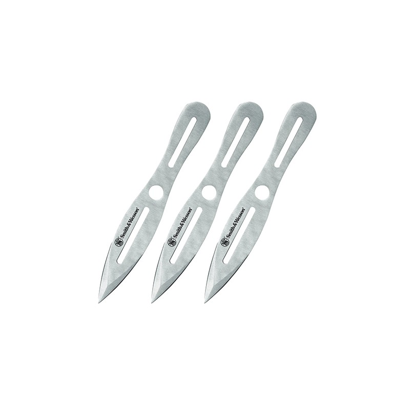 Smith & Wesson's Bullseye 10" is a set of three throwing knives, measuring 10" each and crafted from 2Cr13 stainless steel. Comes with a nylon sheath and slots for each knife.